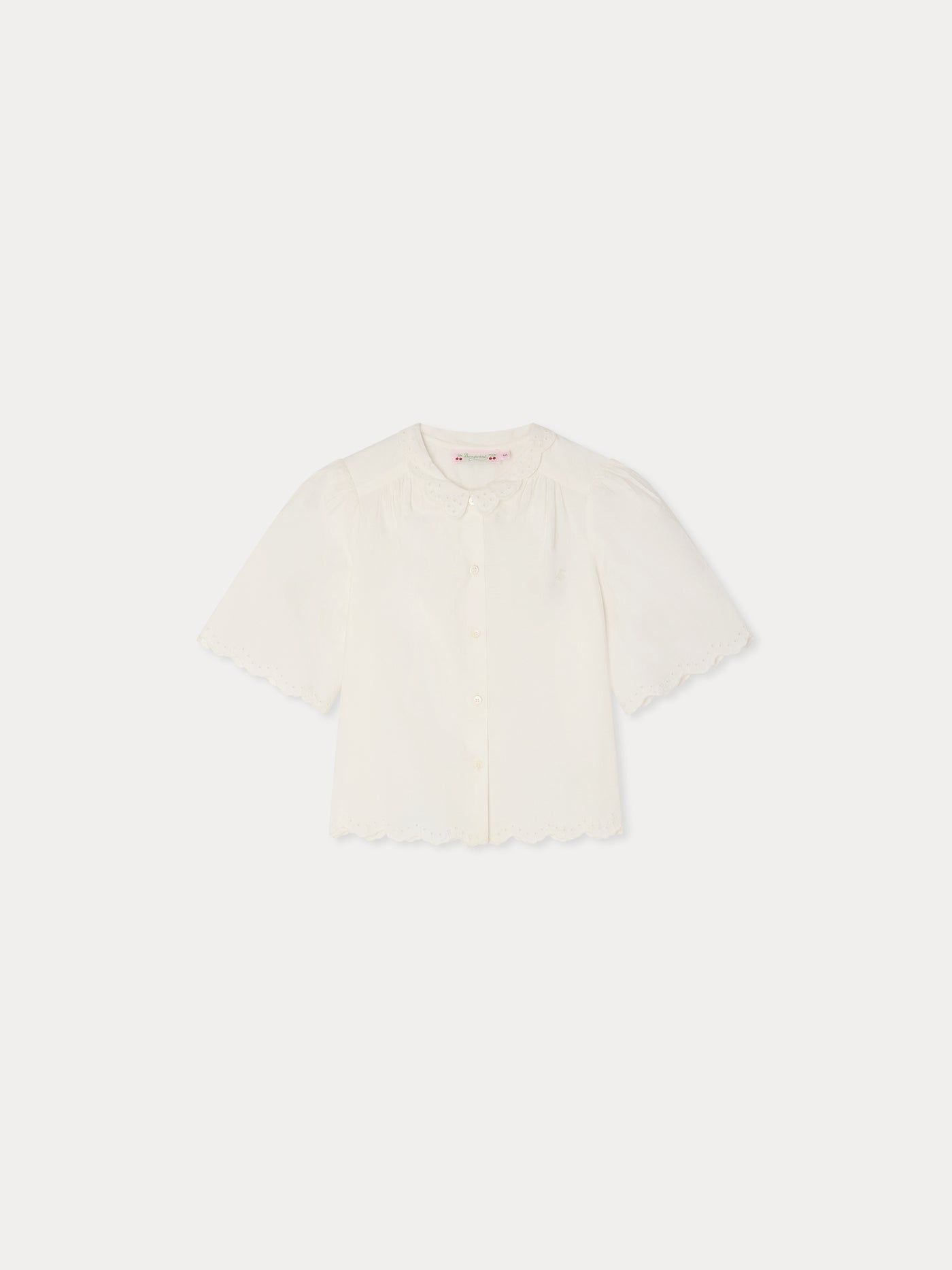 Le pantalon July pour fille en chambray marie confort et élégance avec sa taille élastiquée surpiquée. La poche plaquée au dos se décore d'une cerise contrastante.