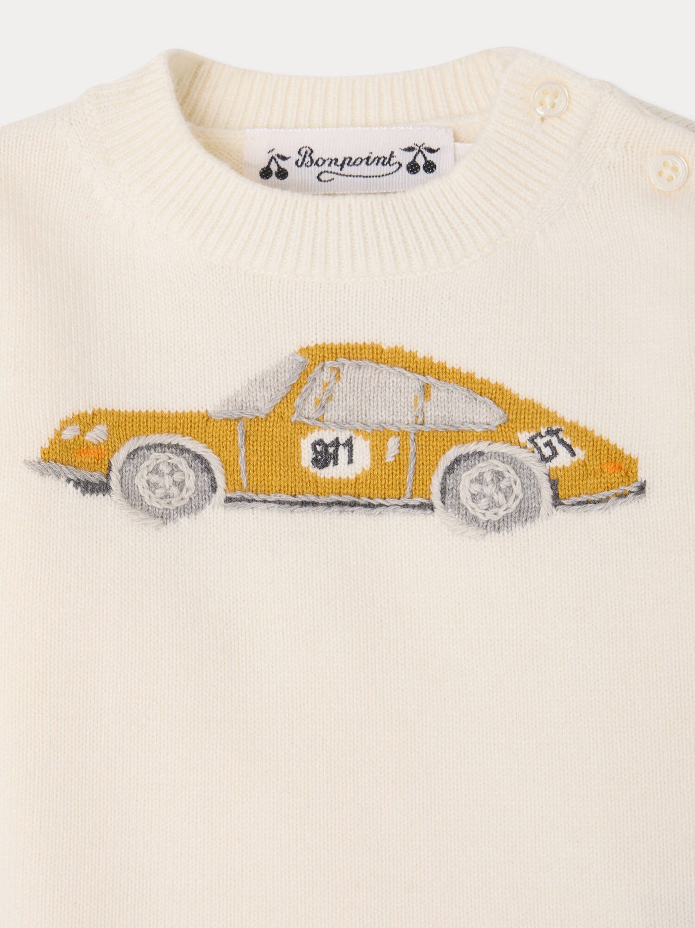 Dieses Baby-Poloshirt Finn ist das Ergebnis einer exklusiven Zusammenarbeit von Bonpoint und Porsche. Das Modell ist mit einem kontrastierenden Kragen und einem gestickten Aufnäher mit dem Schriftzug "Legendary Bonpoint 911" versehen, einer charmanten Reminiszenz an die ikonische Welt der Sportwagen. Das Poloshirt ist aus Bio-Baumwolle hergestellt.