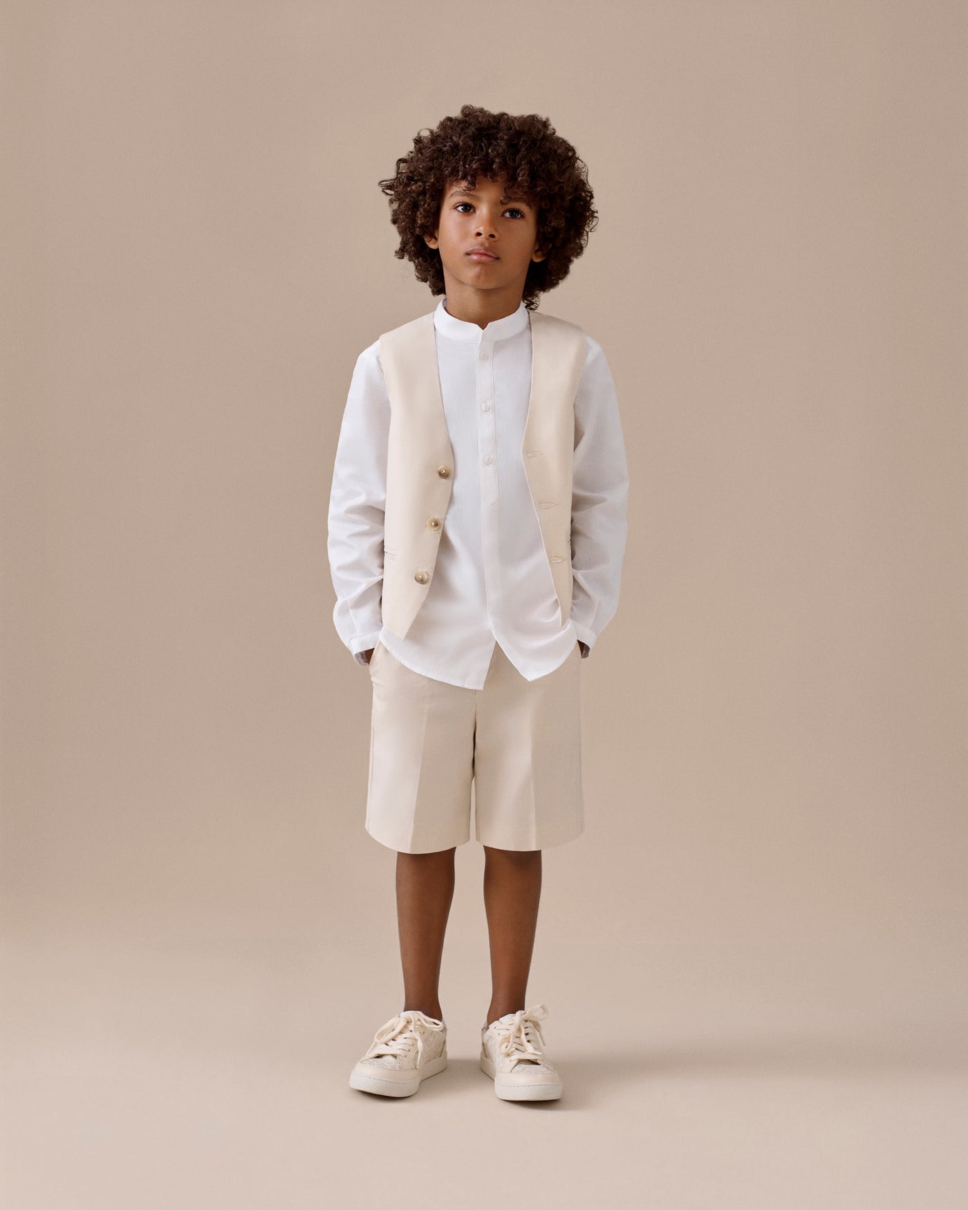 In the heart of the city, gardens and secret passageways become a haven of softness. A procession of children awaits the celebration: some grow bored, others keep busy, tending to their impeccable outfits with care.