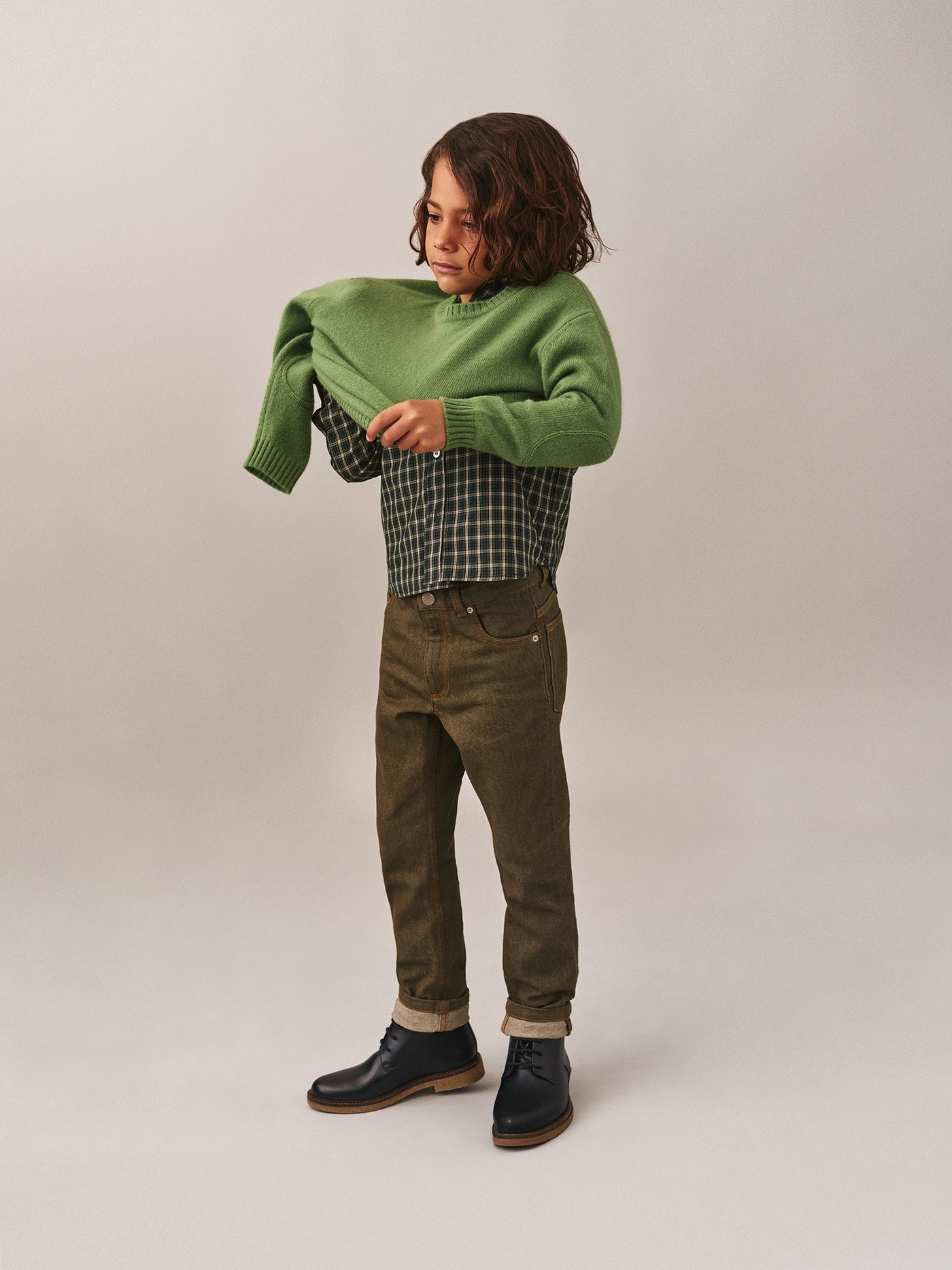 These Dao derbies stand out with their tongue embossed with the House of Bonpoint's name. This high, smooth leather style fastens with round laces.