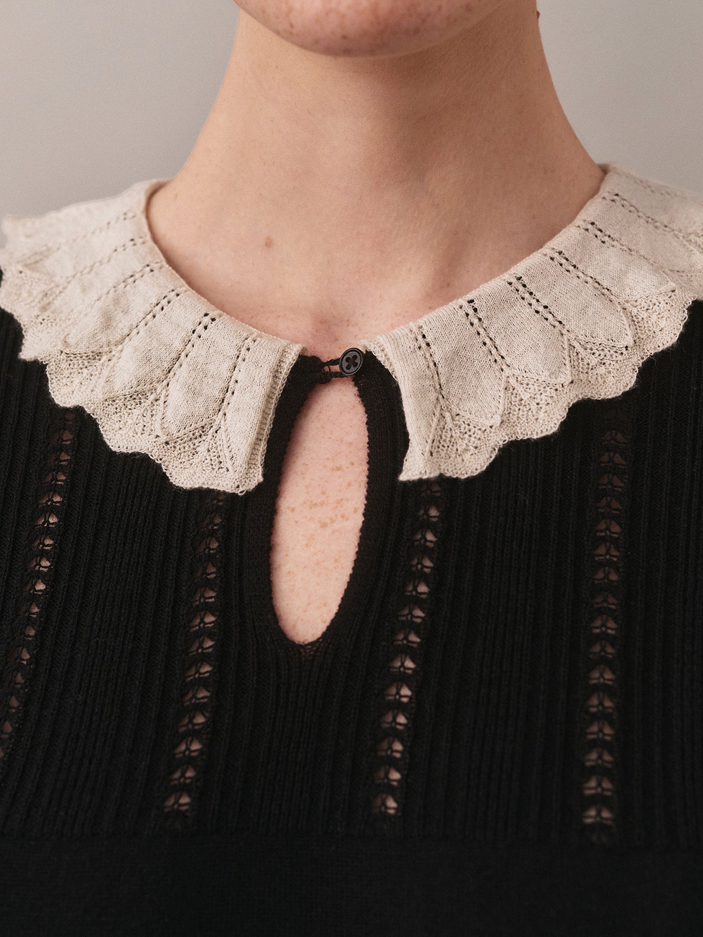 Questa gonna Jylsa da donna in maglia è realizzata in un lussuoso mix di lana, seta e cashmere. Questo capo svasato è rifinito con dettagli traforati e volant che creano un movimento incantevole.