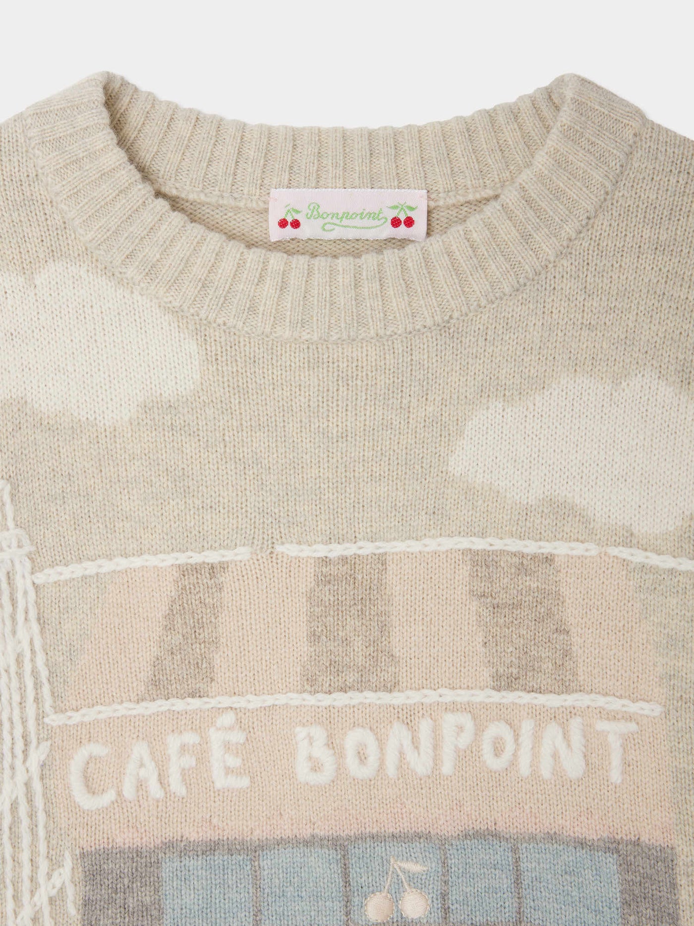 Pull Jodora en jacquard et brodé main Café Bonpoint