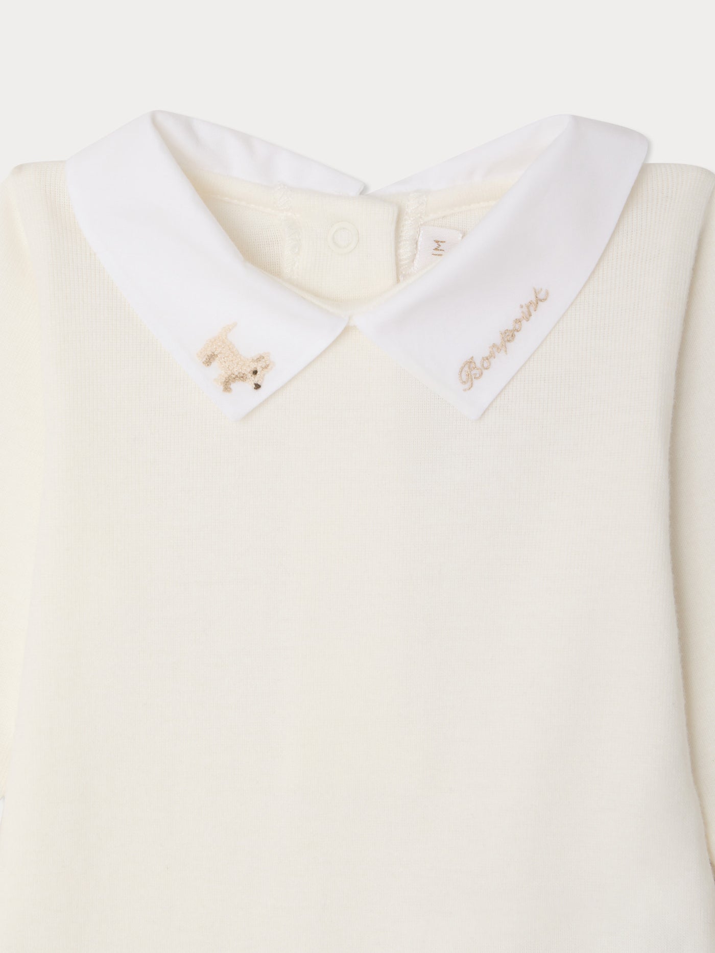Confectionné en coton biologique, ce pyjama pour bébé Georget se démarque par son motif chien. Ouvert par des boutons sur le devant et à l'entrejambe, il est facile à enfiler.